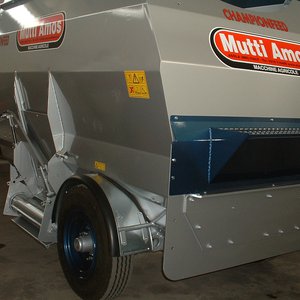 Фуражораздаващ миксер, оборудван с 2 хоризонтални разбъркващи шнека и със зареждаща фреза. Трансмисия на шнековете, потопена в маслена баня. Изпускателен отвор 65 cm, в средата на дясната страна, с ръчно регулиране на височината. Заден отвор за товарене на насипни материали. Фреза за зареждане на царевичен силаж, рулонни бали слама и сенаж. PTO вал, калници, дъно с дебелина 10 мм. Отговаря на европейските норми.