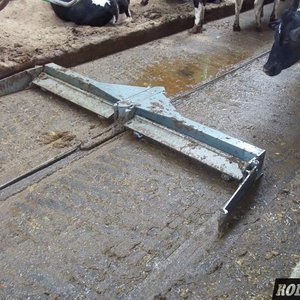 Скрепер с хидравлично задвижване. Скосен профил и ниска скорост на движение за избягване наряняването на копитата. Движението на задвижващата релса е възвратно-постъпателно, а скреперът се движи стъпково, праволинейно. При обратното движение почистващите крила се повдигат, а страничните лопатки се прибират.